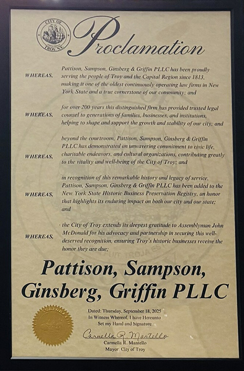 Pattison Sampson Ginsberg & Griffin Inducted into the NYS Historical Business Preservation Registry