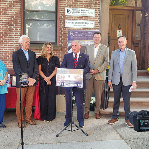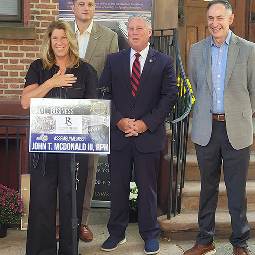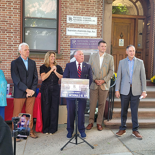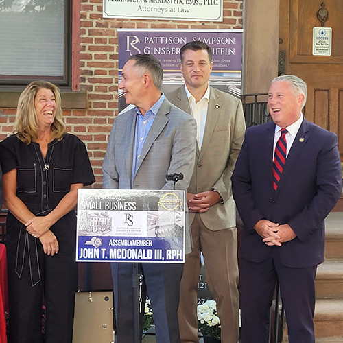 Pattison, Sampson, Ginsberg & Griffin, PLLC was honored yesterday to be inducted into the New York State Historical Business Preservation Registry. The firm would like to thank Assemblymember John T. McDonald III for his nomination and Mayor Carmella Mantello, State Senator Jake Ashby, County Legislators Carole Weaver, Gary Galuski, Mark Fleming, and Former Mayor Mark Pattison who joined in the celebration which took place at the firm’s offices at 22 1st Street on Thursday morning. The celebration continued into the evening at Emry’s Garden in Troy where friends of the firm came together to recognize the prestigious honor.