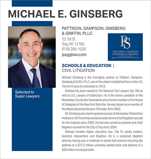 Pattison, Sampson, Ginsberg & Griffin, PLLC is excited to announce that attorney Michael E. Ginsberg has been named again to the 2024 Upstate New York Super Lawyers!