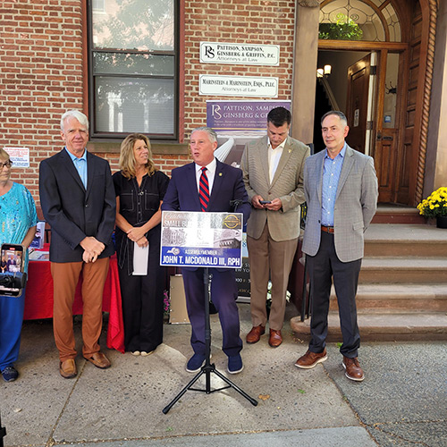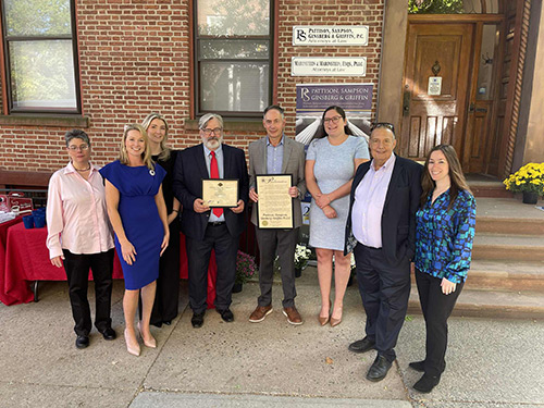 Pattison, Sampson, Ginsberg & Griffin, PLLC was honored yesterday to be inducted into the New York State Historical Business Preservation Registry. The firm would like to thank Assemblymember John T. McDonald III for his nomination and Mayor Carmella Mantello, State Senator Jake Ashby, County Legislators Carole Weaver, Gary Galuski, Mark Fleming, and Former Mayor Mark Pattison who joined in the celebration which took place at the firm’s offices at 22 1st Street on Thursday morning. The celebration continued into the evening at Emry’s Garden in Troy where friends of the firm came together to recognize the prestigious honor.