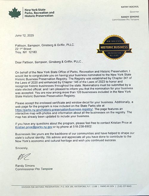 Pattison Sampson Ginsberg & Griffin Inducted into the NYS Historical Business Preservation Registry